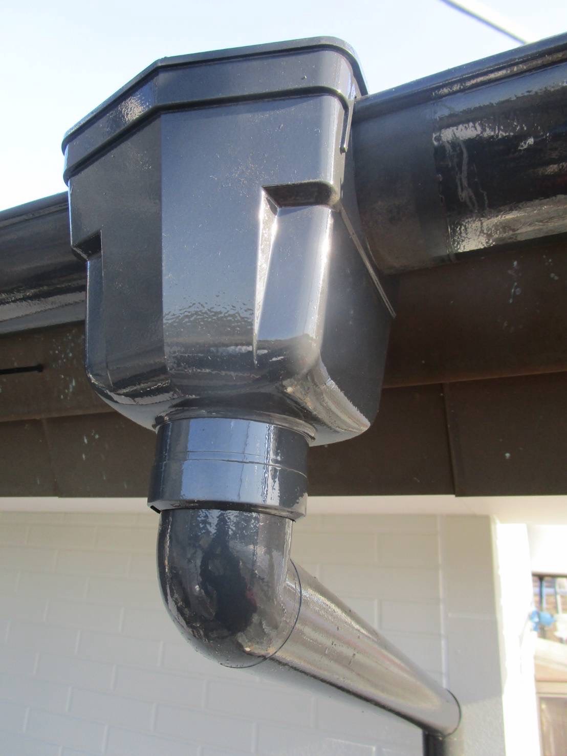 施工前はこちらの「U様から外壁塗装工事のご依頼がありました!施工前をレポート|栃木県真岡市」でご紹介しております。雨樋の集水枡とデンデン(控え金具)を交換しました